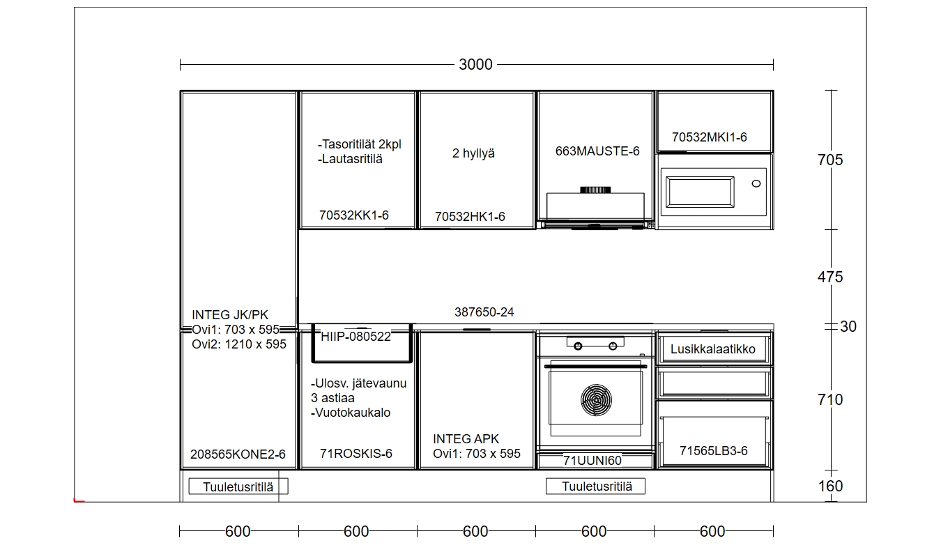 - 71UUNI60, 1KPL (Kalusteuunin korkeus 600mm)