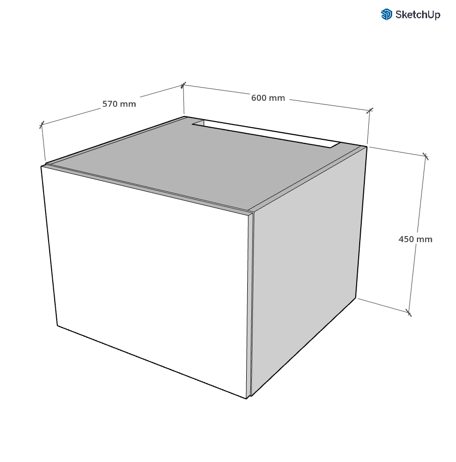Kalusteoven korkeus: 445mm. (Huom. kalusteovi/ovet toimitetaan omassa paketissa, niitä ei asenneta tehtaalla valmiiksi kalusteeseen.)